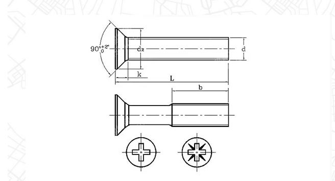 沉头螺丝,又称作平机螺丝、平头螺丝,其头部,是一个90度的锥体,和常见的木螺丝类似,头部有工具拧紧槽,有一字形、十字形、内六角形等。